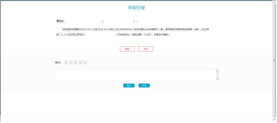 ?          點擊【申報】,進入申報結(jié)果頁面,需繳稅的點擊【繳稅】進入繳稅頁面劃繳稅款,無需繳稅的點擊【關閉】。