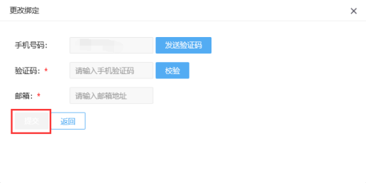 ?          點擊手機號碼右側(cè)【發(fā)送驗證碼】,輸入手機號碼中收取到的驗證碼,點擊【校驗】,然后再輸入新郵箱地址,提交鍵會點亮,顯示為藍色,點擊【提交】,綁定郵箱即修改完成。