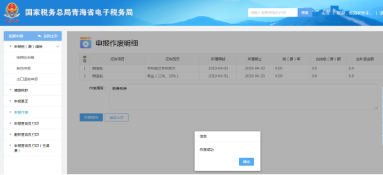 注:作廢報表需注意是本屬期內(nèi)申報成功并未劃繳稅款的報表,財報不包含在內(nèi),未申報成功的報表記錄無法在作廢界面查詢。