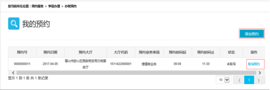 (2).通過(guò)點(diǎn)擊“添加預(yù)約”,可以返回預(yù)約操作界面。也可以通過(guò)“取消預(yù)約”操作,作廢預(yù)約。