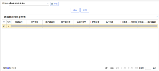 5、     根據(jù)業(yè)務(wù)需要維護【噪聲基礎(chǔ)信息采集表】附表,點擊【增行】,選擇稅源信息,點擊【確定】,維護相應信息,點擊保存。