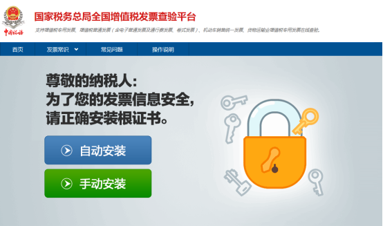 1、 完成根證書安裝后,重新打開微軟IE瀏覽器訪問 https://inv-veri.chinatax.gov.cn/網(wǎng)址,如果可以直接出現(xiàn)如下頁面即表示成功安裝了根證書。