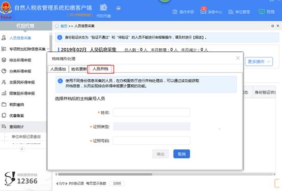 w2.納稅人到辦稅服務(wù)廳完成并檔后,點(diǎn)擊扣繳客戶端【人員信息采集】-【更多操作】,選擇【特殊情形處理】-【人員并檔】,選擇正確的人員進(jìn)行獲取并檔信息。