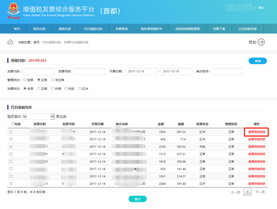 2)查看發(fā)票明細信息