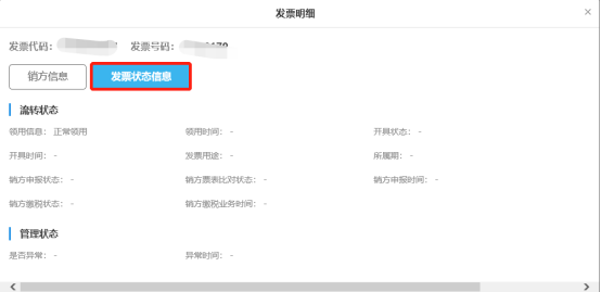 (3)點擊“發(fā)票狀態(tài)信息”按鈕可切換到發(fā)票狀態(tài)信息內(nèi)容,具體如下圖: