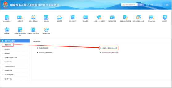 (1)納稅人登錄寧夏電子稅務(wù)局點(diǎn)擊【我要辦稅】-【稅費(fèi)申報(bào)及繳納】-【增值稅申報(bào)】-【增值稅小規(guī)模申報(bào)】,如下圖所示。