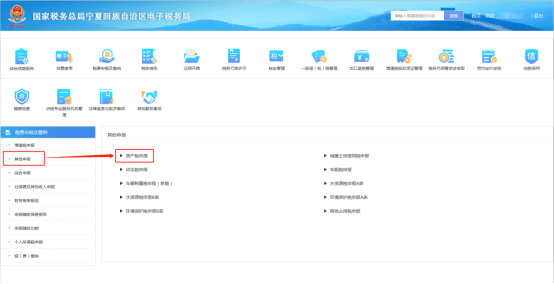 (1)進(jìn)入方法:納稅人登錄寧夏電子稅務(wù)局點擊【我要辦稅】—【稅費申報及繳納】—【其它申報】—【房產(chǎn)稅申報】