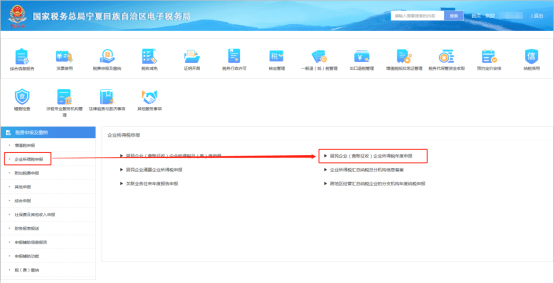 寧夏電子稅務(wù)局【我要辦稅】-【稅費(fèi)申報(bào)及繳納】-企業(yè)所得稅申報(bào)-居民企業(yè)(查賬征收)所得稅年度申報(bào);