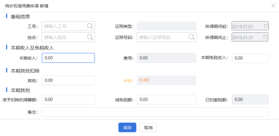 【費(fèi)用】:本期收入×20%,自動(dòng)帶出,不可修改。