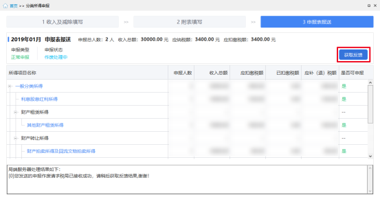 點擊【作廢申報】,局端接收成功后,申報狀態(tài)會變更為“作廢處理中”,并僅顯示【獲取反饋】,稍后點擊【獲取反饋】查看作廢結果。作廢成功,申報狀態(tài)會變更為“未申報”,則可對已申報數據重新進行編輯或清空數據后重新填寫發(fā)送申報;作廢失敗,申報狀態(tài)會變更為作廢前的狀態(tài),即申報成功狀態(tài)。