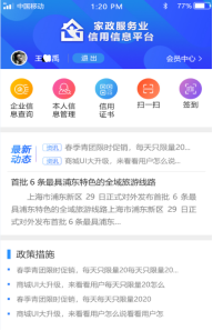 家政服務員登錄家政APP后,可使用企業(yè)信用查詢、本人信息管理、信用證書、簽到、掃一掃等5項功能。