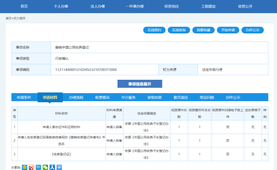 用戶通過上述方式找到對應(yīng)審批事項(xiàng)后,可以通過點(diǎn)擊事項(xiàng)名稱,進(jìn)入到辦事指南頁面,辦事指南里面顯示的是該審批事項(xiàng)的基本辦理信息,如事項(xiàng)名稱、實(shí)施機(jī)構(gòu)、事項(xiàng)類型、行使層級、所屬領(lǐng)域、設(shè)定依據(jù)、辦理?xiàng)l件、常見問題、辦理渠道等數(shù)據(jù)項(xiàng)。