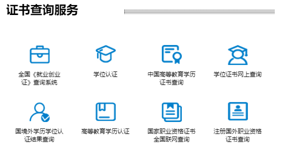 為用工單位、求職者提供學歷學位認證、職業(yè)資格證書查詢等求職就業(yè)相關的在線服務。