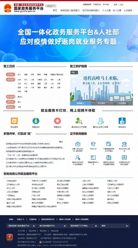 新型冠狀病毒感染肺炎疫情防控阻擊戰(zhàn)打響以來,為方便群眾及時準確掌握疫情防控期間的返崗就業(yè)服務信息,引導務工人員安全有序返崗,人力資源社會保障部與全國一體化政務服務平臺共同推出“應對疫情做好返崗就業(yè)服務專題”。