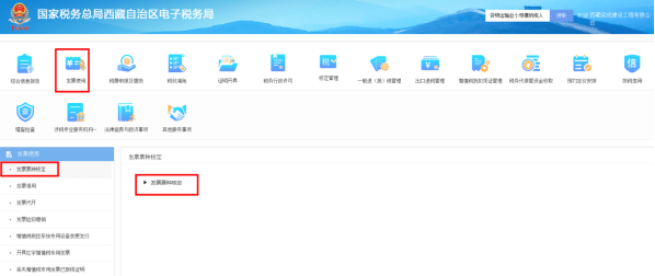 1)登錄西藏電子稅務(wù)局--【辦稅中心】-【發(fā)票使用】-【發(fā)票票種核定】,點(diǎn)擊進(jìn)入界面。