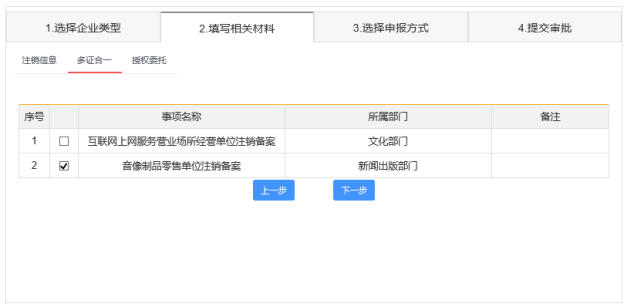 授權(quán)委托頁填寫完成點擊頁面底部下一步按鈕,進(jìn)入選擇申報方式頁,用戶選擇申報方式后選擇我已閱讀并同意點擊下一步按鈕進(jìn)入提交審批頁面提交即可。