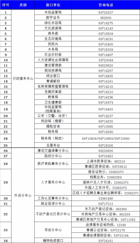 上海市青浦區(qū)行政服務中心辦事大廳窗口咨詢電話