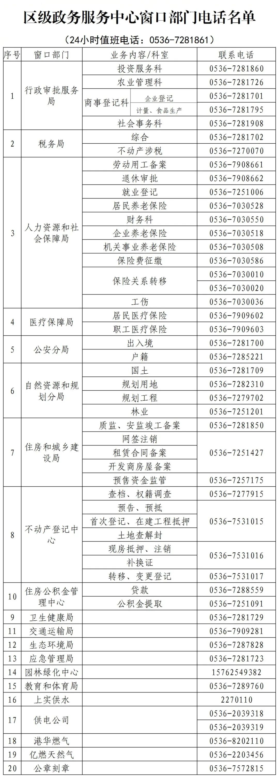 濰坊市各(區(qū))縣政務(wù)服務(wù)中心辦事大廳入駐單位窗口咨詢電話