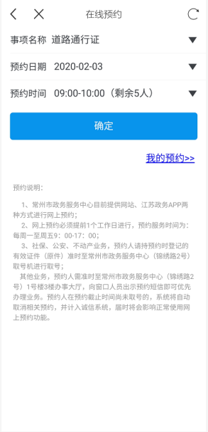 “江蘇政務(wù)服務(wù)網(wǎng)-常州綜合服務(wù)旗艦店”、江蘇政務(wù)服務(wù)APP、我的常州APP均可進(jìn)行網(wǎng)上預(yù)約,進(jìn)入預(yù)約頁(yè)面,選擇預(yù)約辦事,至少提前一天預(yù)約需要辦理的事項(xiàng)和辦理時(shí)間。根據(jù)預(yù)約時(shí)間段到大廳辦理業(yè)務(wù),有效減少現(xiàn)場(chǎng)排隊(duì)等待和辦理業(yè)務(wù)時(shí)間。