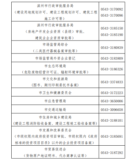 | 濱州市行政審批服務(wù)局 | 0543-3181351 | |