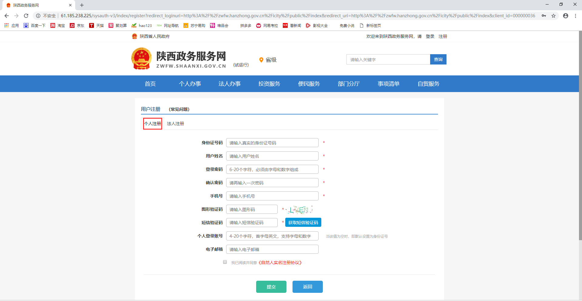 3.個人用戶注冊:點(diǎn)擊右上角注冊-點(diǎn)擊個人注冊: