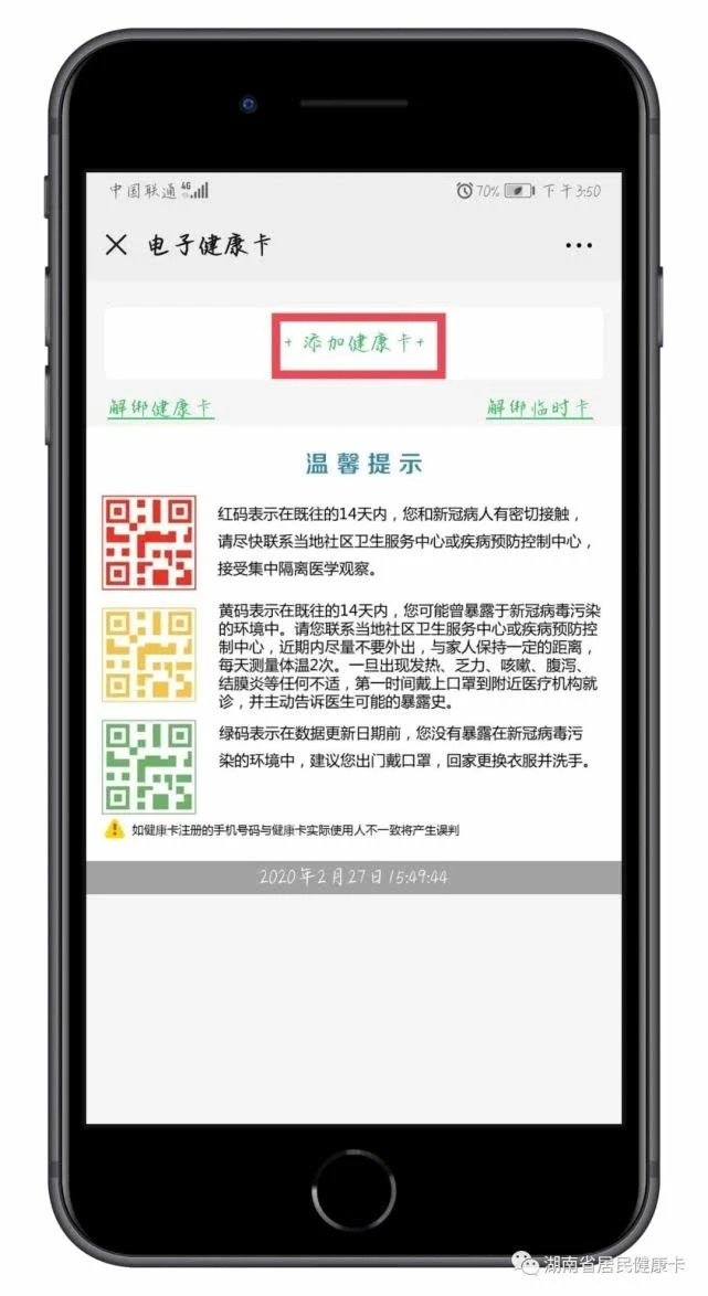 為充分利用大數(shù)據(jù)進(jìn)一步做好湖南新冠肺炎疫情防控工作,根據(jù)湖南省委安排部署,湖南省衛(wèi)生健康委聯(lián)合相關(guān)部門運(yùn)用大數(shù)據(jù)進(jìn)行分析比對(duì),用電子健康卡二維碼“紅、黃、綠”三種顏色進(jìn)行信息提示,為復(fù)工企業(yè)和個(gè)人提供疫情參考信息。