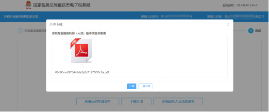 第五步:提交成功后,點(diǎn)擊“查看我的申請(qǐng)資料”可以查看提交信息;點(diǎn)擊“下載打印”下載提交信息;