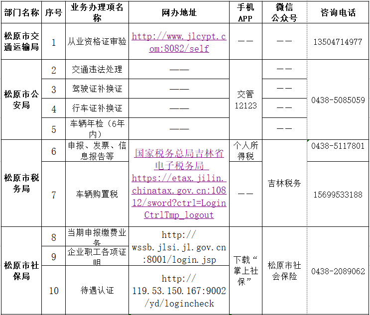 5.城鄉(xiāng)居民參保繳費(fèi)業(yè)務(wù);醫(yī)保0438-2284021 、稅務(wù)0438-2103948