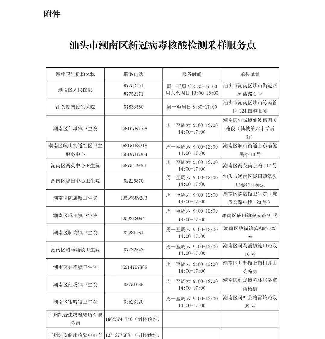 一、汕頭市潮南區(qū)核酸檢測(cè)機(jī)構(gòu)