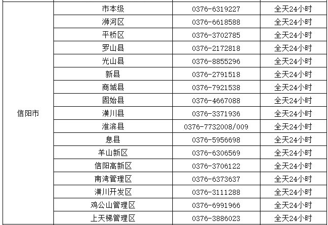 信陽市新冠疫情防控指揮部咨詢電話:0376-6319227;