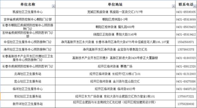 長春市、縣(區(qū))疫苗接種服務(wù)中心電話