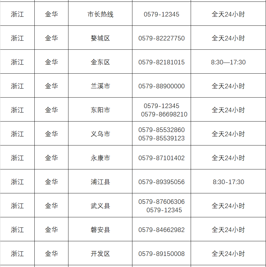 如果上述號碼無法接通,可撥打金華地區(qū)便民服務(wù)熱線0579-88900000 問詢