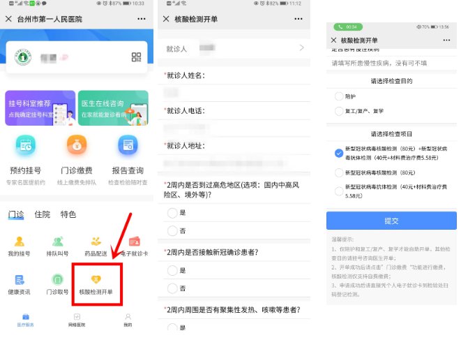 3、臺(tái)州市第一人民醫(yī)院核酸檢測(cè)攻略