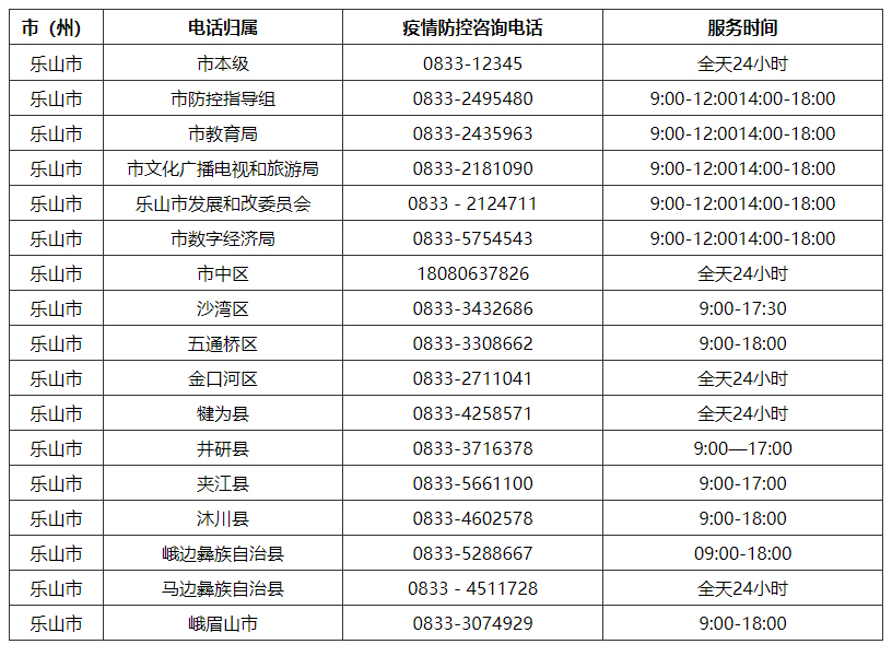 樂山市新冠疫情防控指揮部咨詢電話:0833-2495480;