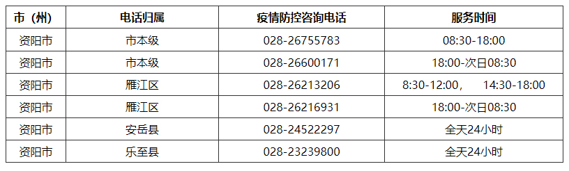 資陽市新冠疫情防控指揮部咨詢電話:028-26755783;