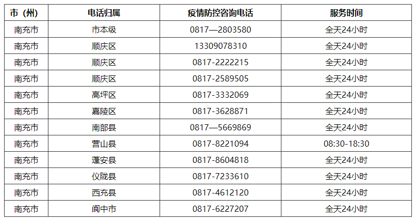 南充市新冠疫情防控指揮部咨詢電話:0817-2803580