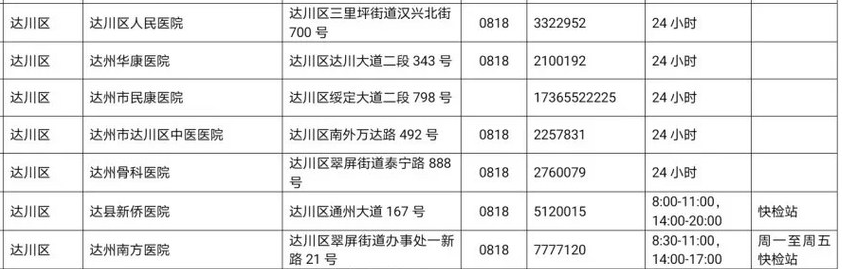 一、達(dá)州市達(dá)川區(qū)24小時(shí)核酸檢測機(jī)構(gòu)