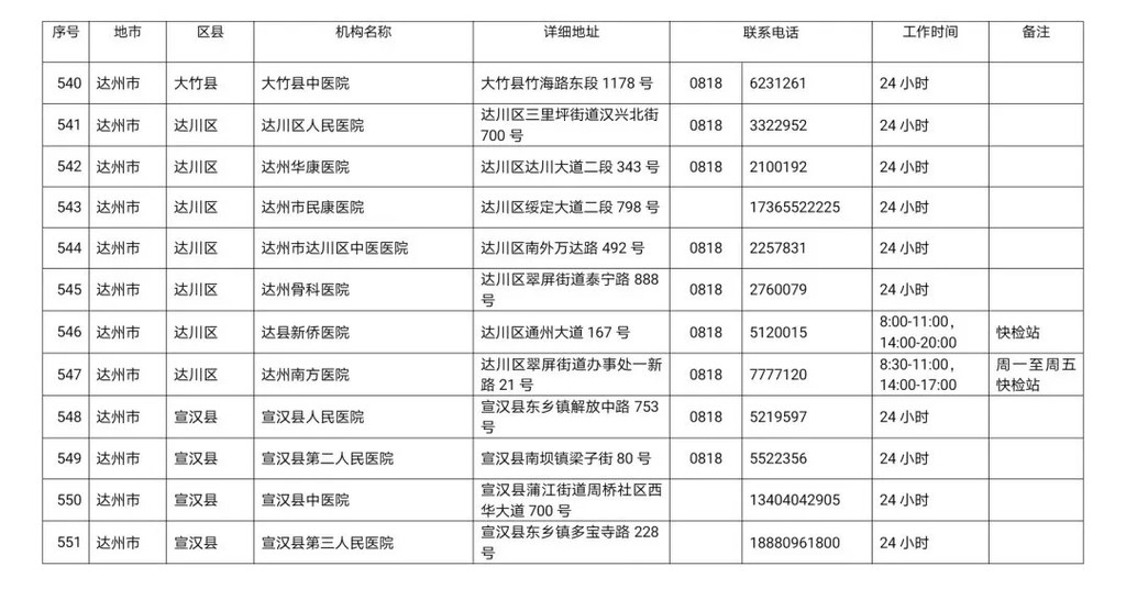 2、 達州市新冠肺炎核酸檢測機構(gòu)聯(lián)系信息