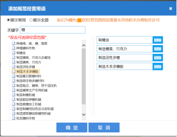 7. 點擊【點擊添加規(guī)范經營用語】,彈出如下頁面,搜索添加經營范圍。