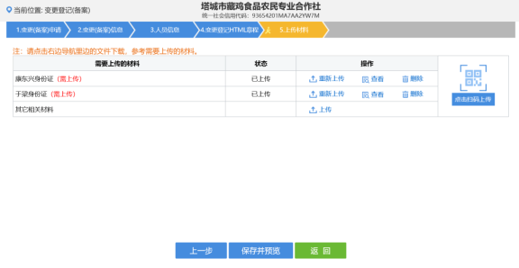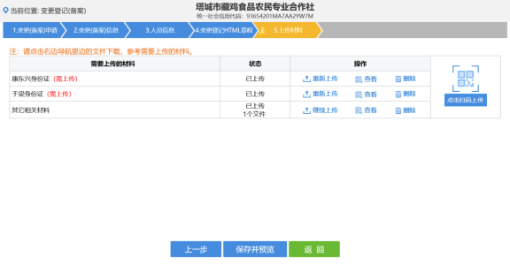 20. 點擊其它相關材料右側的【上傳】上傳相應資料,上傳完如下圖所示。