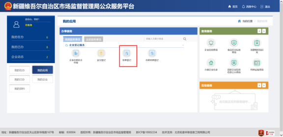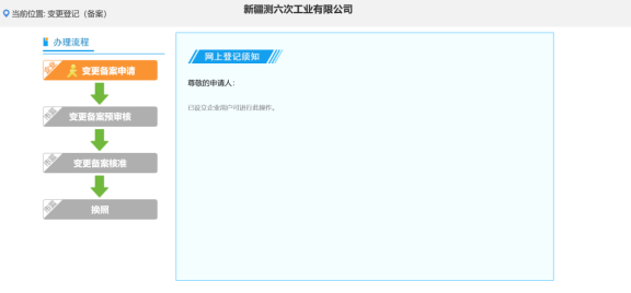 用戶通過新疆市場監(jiān)督管理局政務服務公眾服務平臺申請企業(yè)變更登記。