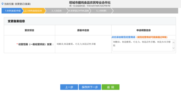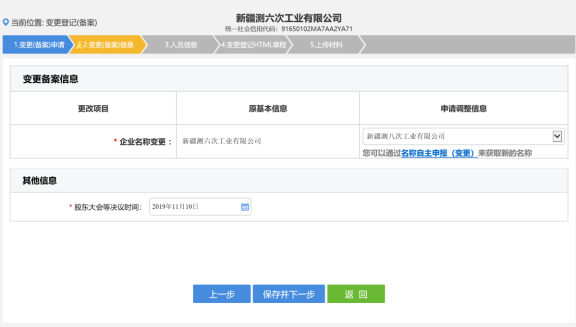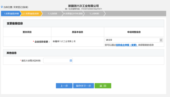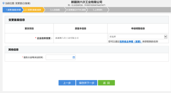 6. 進入變更(備案)信息錄入頁面,如下圖所示。