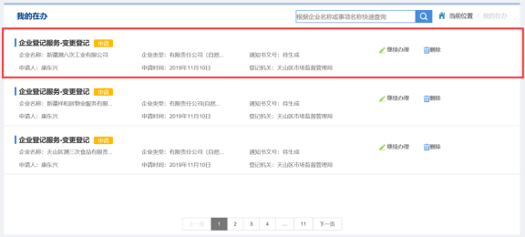 14. 從我的在辦中找到,名稱變更業(yè)務,如下圖所示。