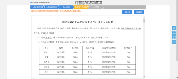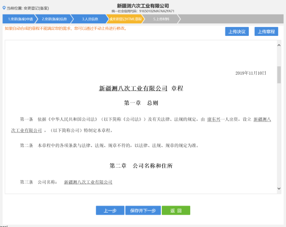 21. 進入變更登記 HTML 章程頁面,如下圖所示。注:用戶可以手動上傳決議和章程。