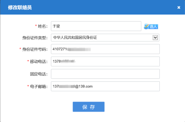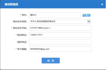 12. 修改聯(lián)絡員信息,如下圖所示。