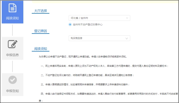 為最大限度減少不動(dòng)產(chǎn)登記大廳人員聚集,有效阻斷疫情傳播,按照省里統(tǒng)一部署,保定市各級不動(dòng)產(chǎn)登記大廳在疫情防控特殊時(shí)期實(shí)行“互聯(lián)網(wǎng)+不動(dòng)產(chǎn)登記”業(yè)務(wù)服務(wù)。具體的操作流程如下: