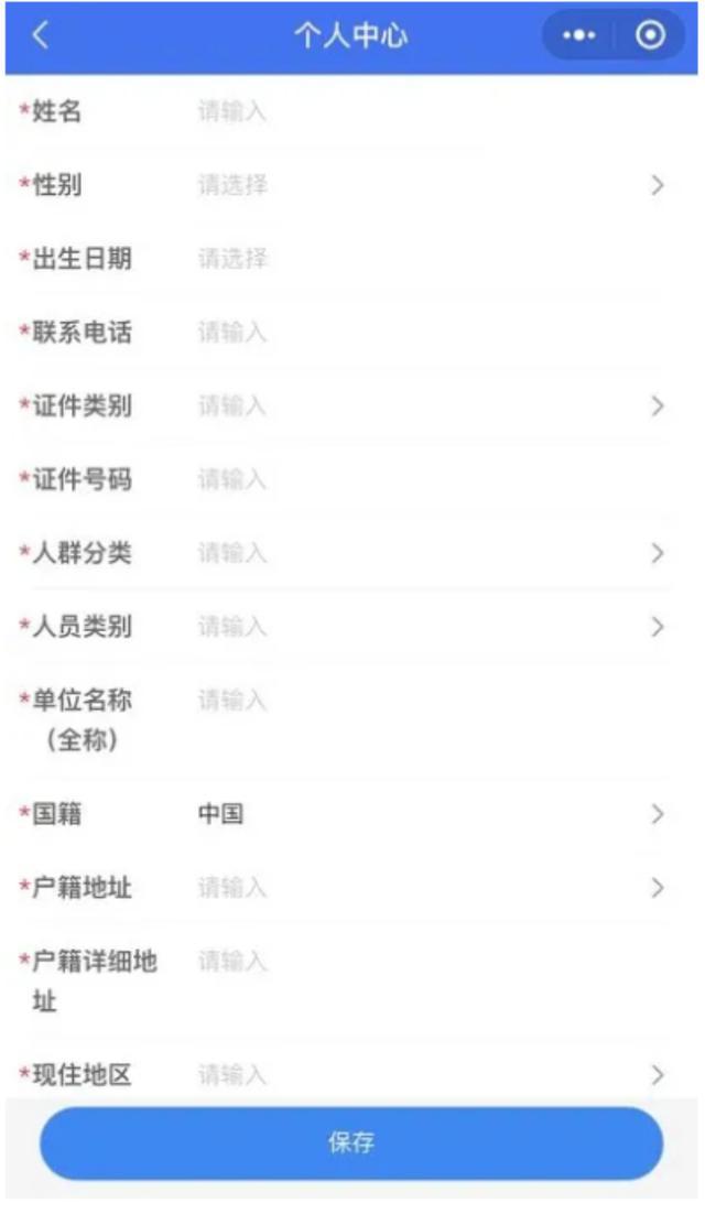 2.點(diǎn)擊“個(gè)人中心”,如實(shí)填寫(xiě)個(gè)人信息并保存;