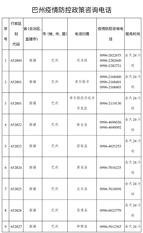 巴州咨詢電話:0996-2168400、0996-2168401、0996-2168389;0996-2282600、2282721;