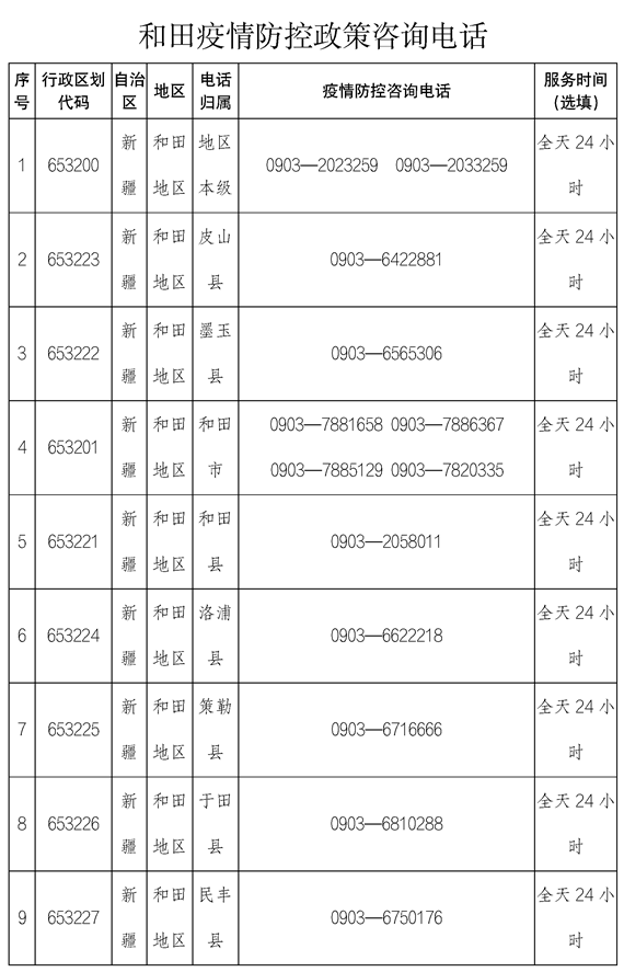 和田地區(qū)(含兵團(tuán)第十四師)新冠肺炎疫情防控群眾訴求熱線電話
