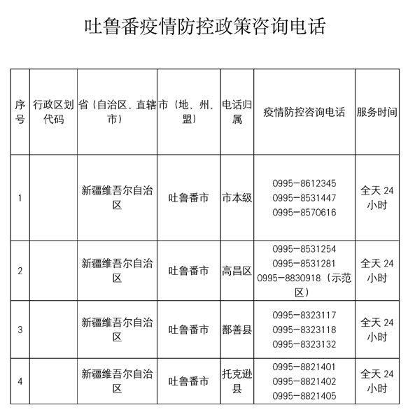 吐魯番市疫情防控指揮部增加4部便民服務(wù)熱線電話。各族群眾在疫情防控期間如有相關(guān)訴求可撥打:0995-8612345、8531447、8570616、8531609;